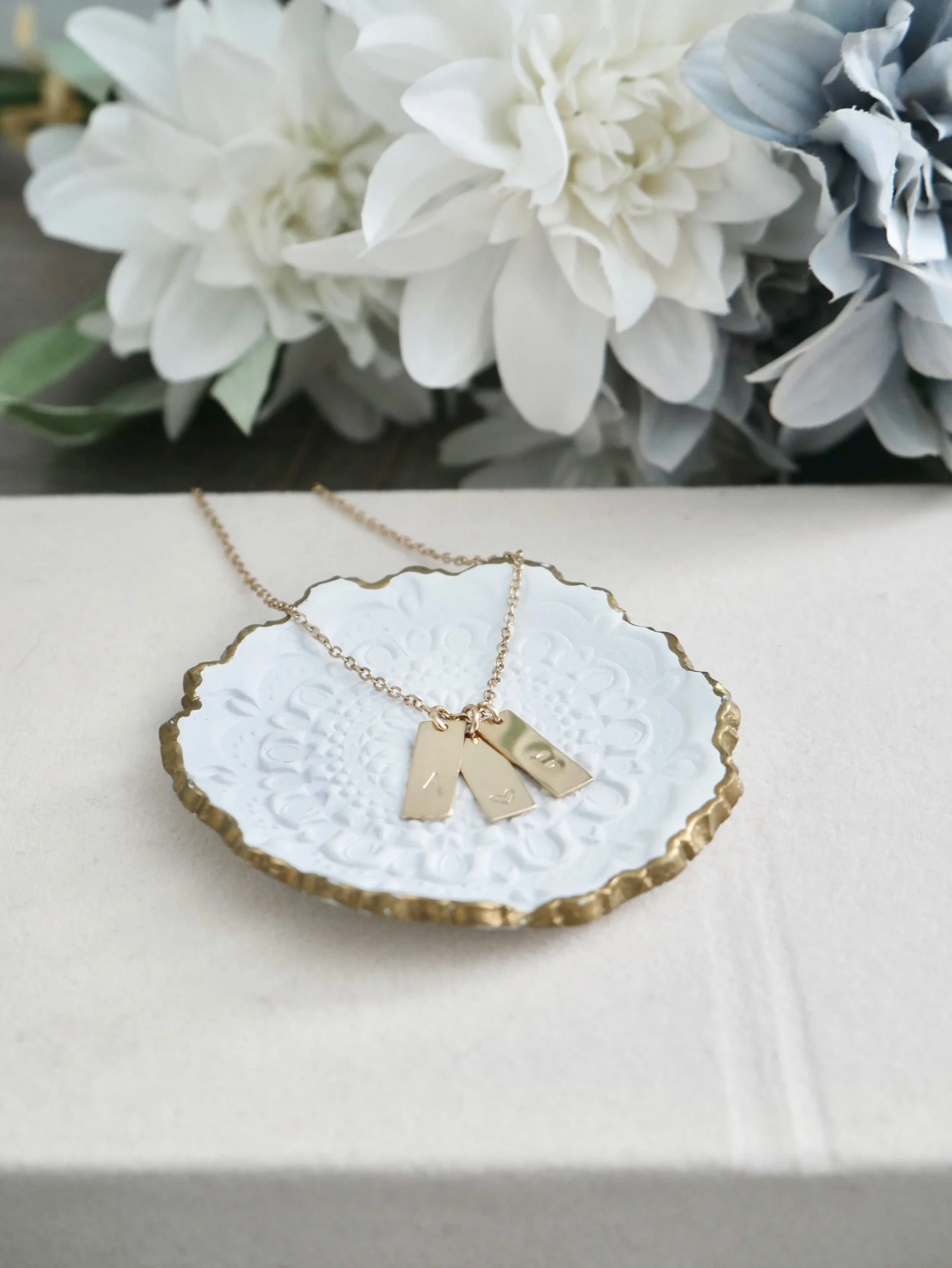 This delicate, rectangle bar necklace features hand stamped magnolia flowers to make a beautiful heirloom piece.